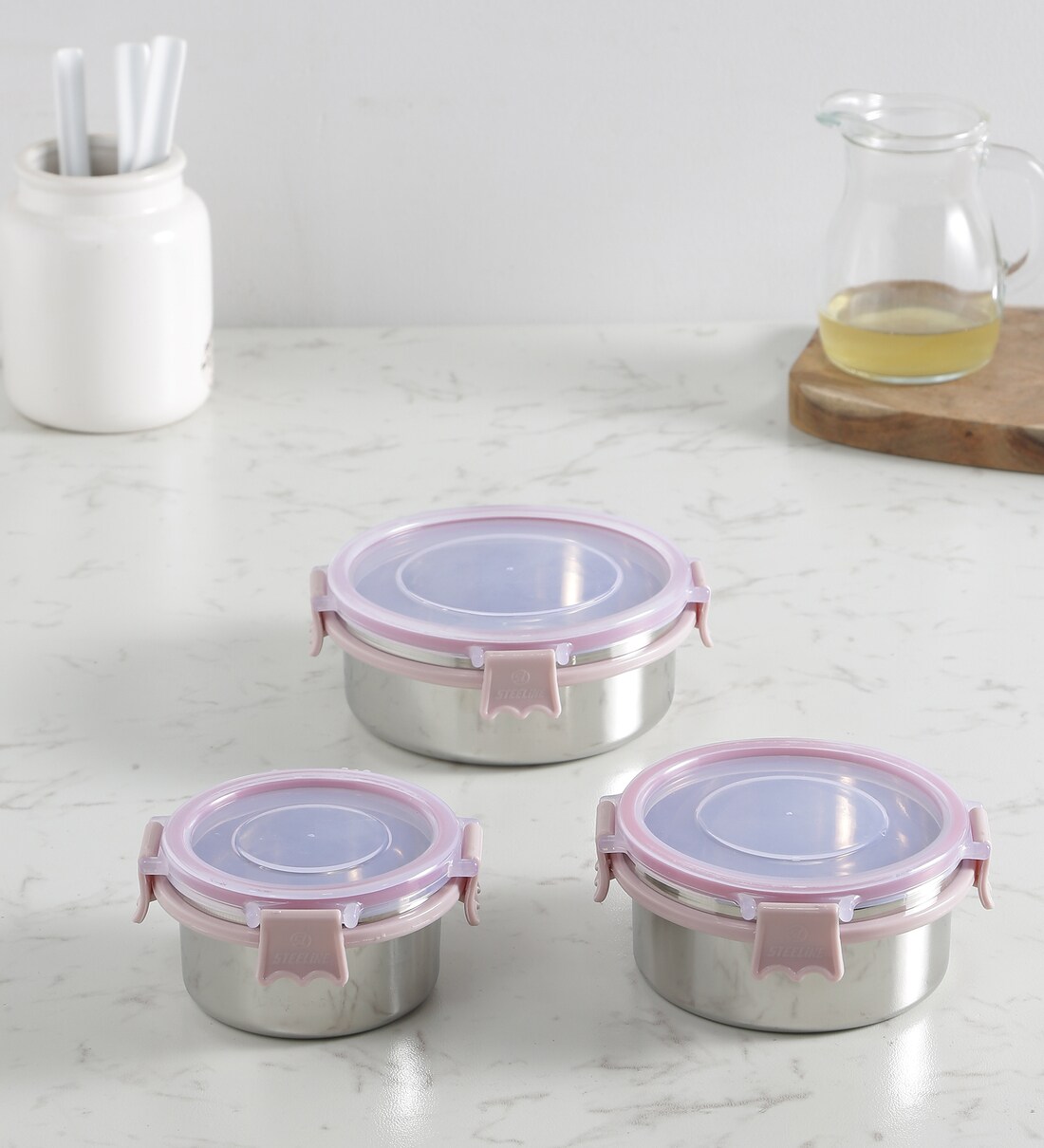 Clear Lock Series Regular Stainless Steel (Set of 3 ) Airtight Container with Leak Proof lid