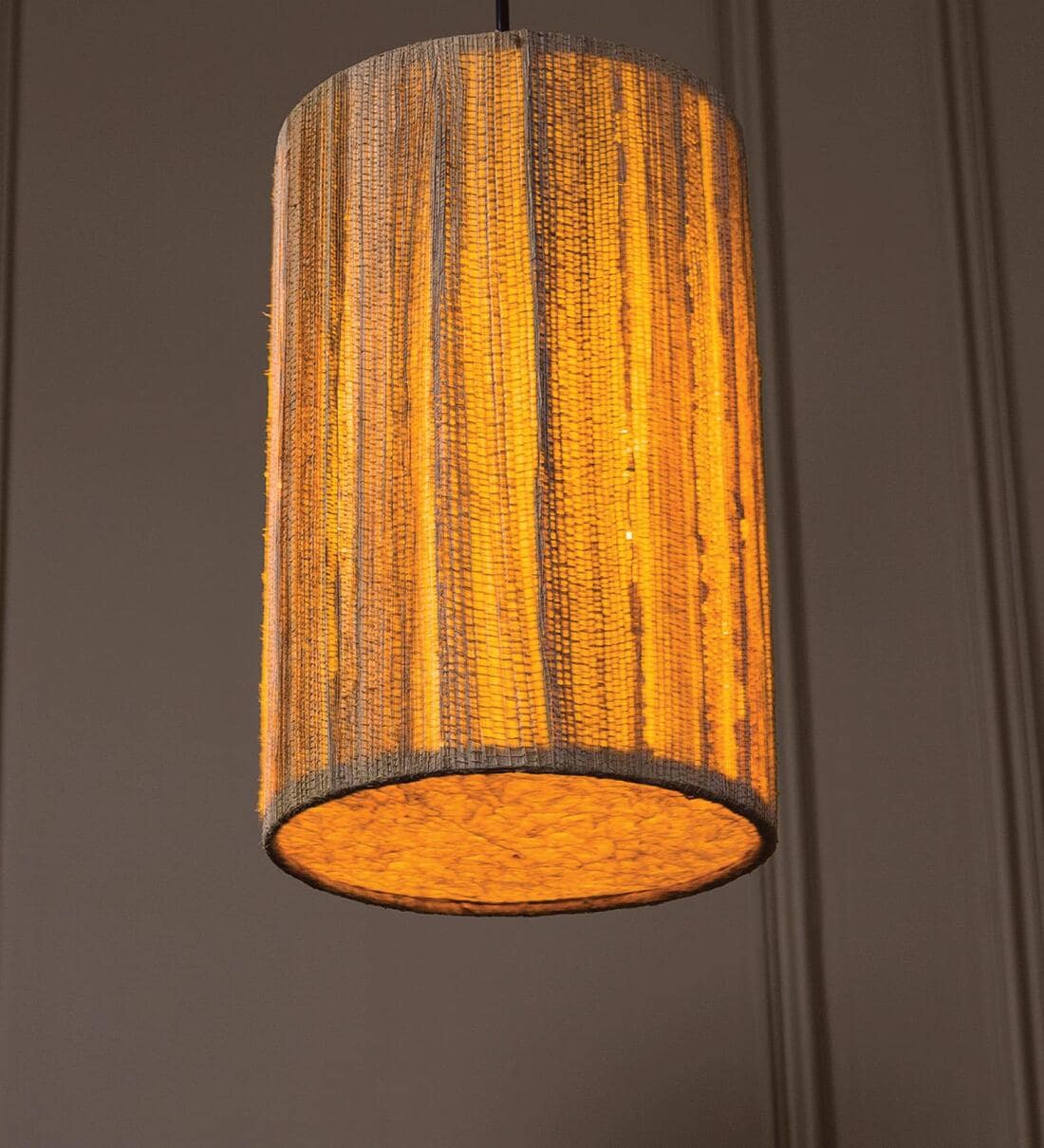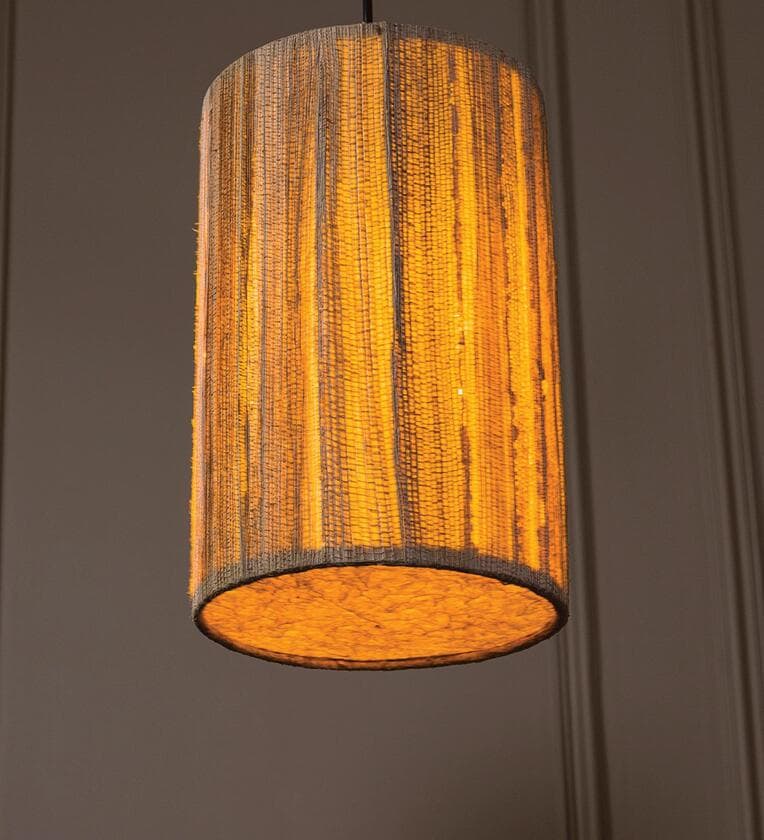 Cliff 12 Inch Off White & Natural Brown Banana Fibre Cylindrical Hanging Lights