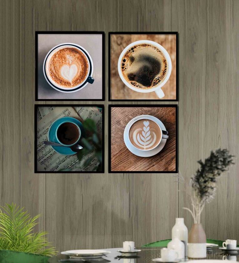 Coffee Brown Engineered Wood Framed Art Print Set of 4