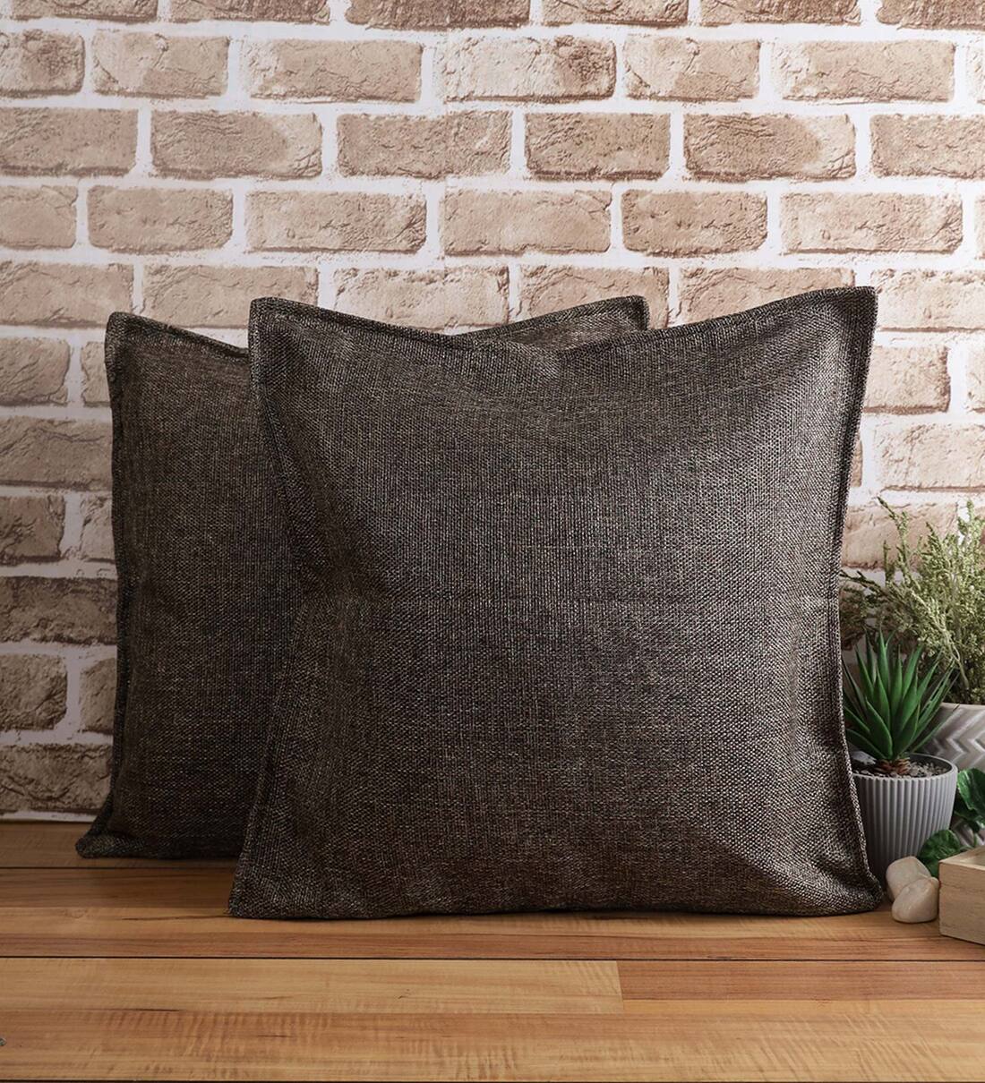 Coffee Solid Jute 18 x 18 Inches Cushion Covers (Set of 2)