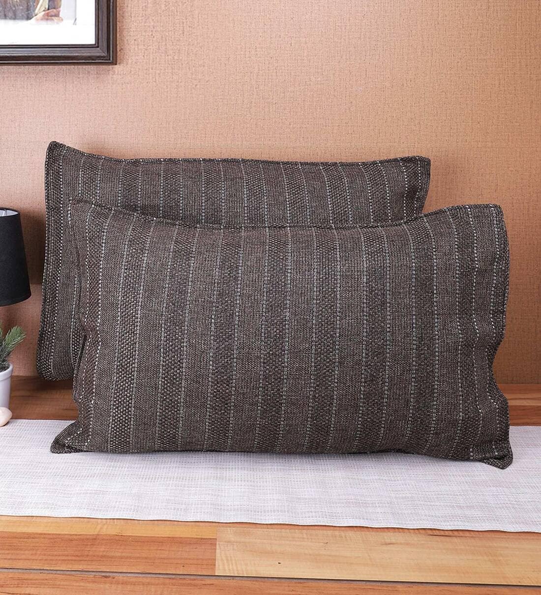 Coffee Striped 210TC Jute 17 x 27 Inches Pillow Covers (Set of 2)