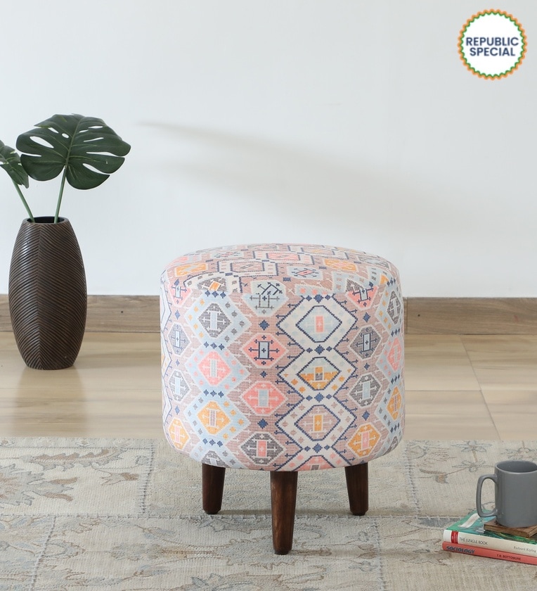 Colby Fabric Seating Stool In Provincial Teak Finish