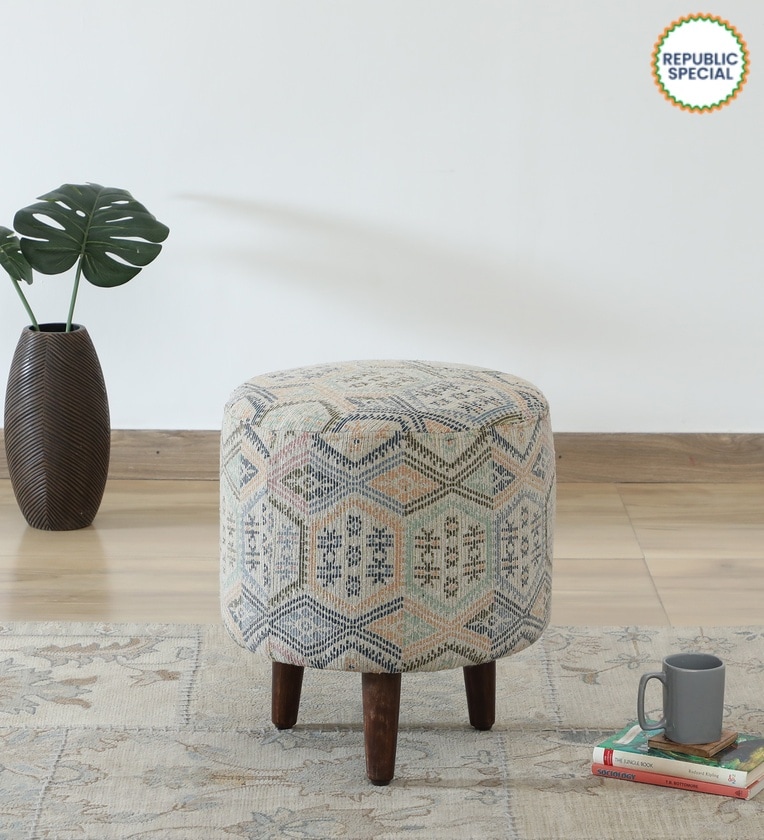Colby Fabric Seating Stool In Provincial Teak Finish