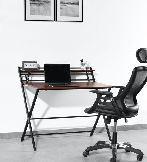 Table top and shelves made of 15 mm MDF. Table under structure and support made of 0.7 mm thick powder coated mild steel tubes. Portable & foldable study table