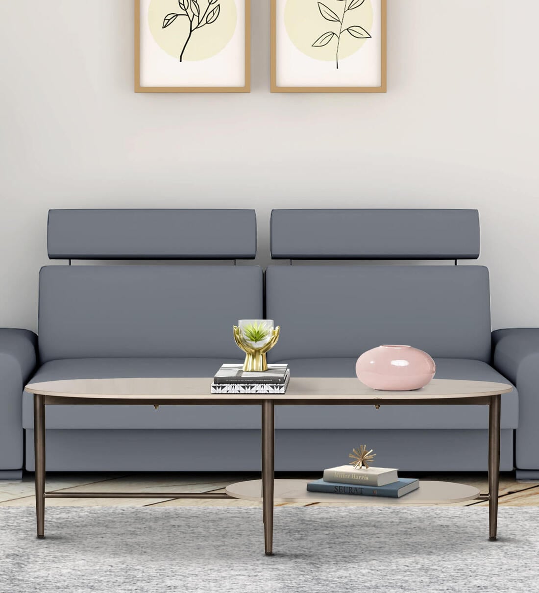 Contable Ceramic Top Coffee Table In White & Grey Colour