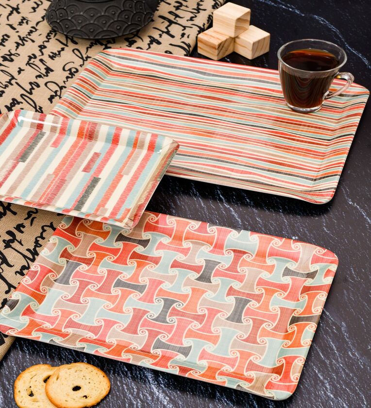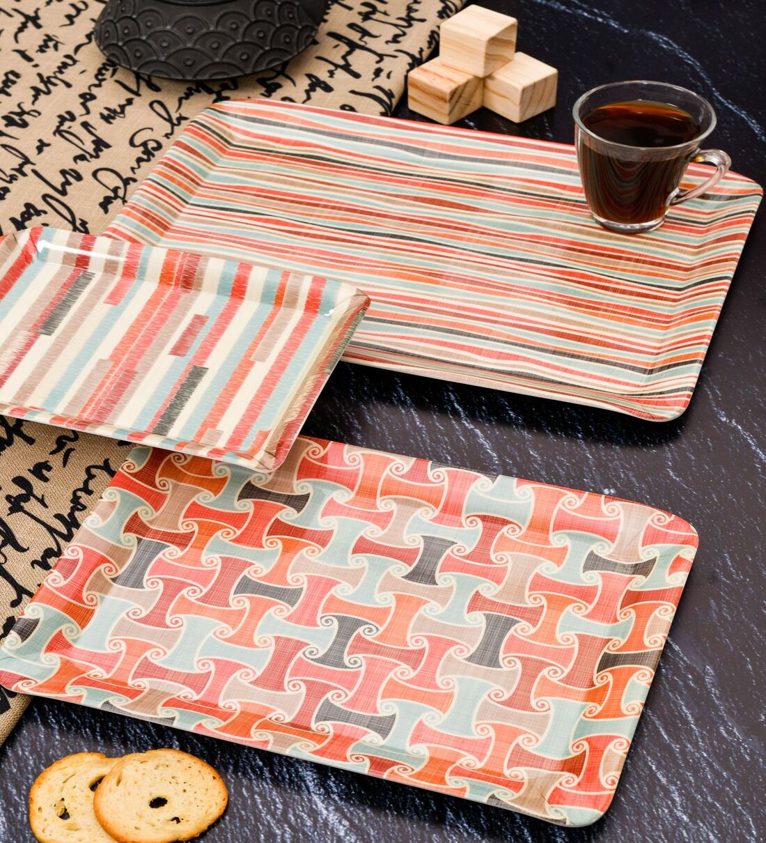 Multicolour Contemporary Melamine (Set of 3) Serving Tray Set