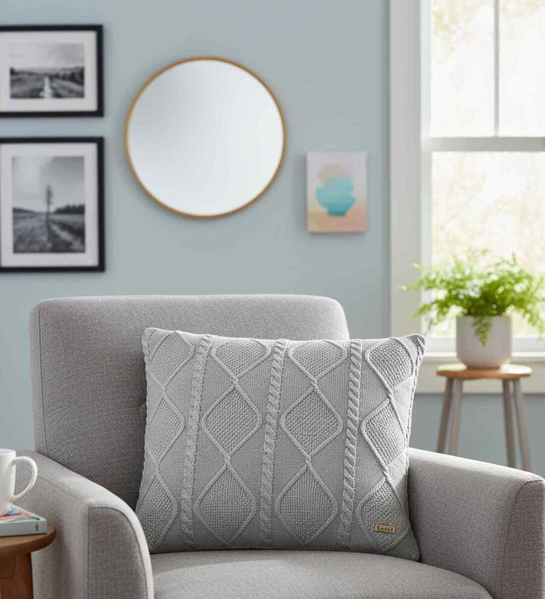 Enhance your decor with Cable Moss Cushion Cover. This beautifully made Textured cushion cover (No Fill Inside) is expertly knitted in 100% Quality Cotton.