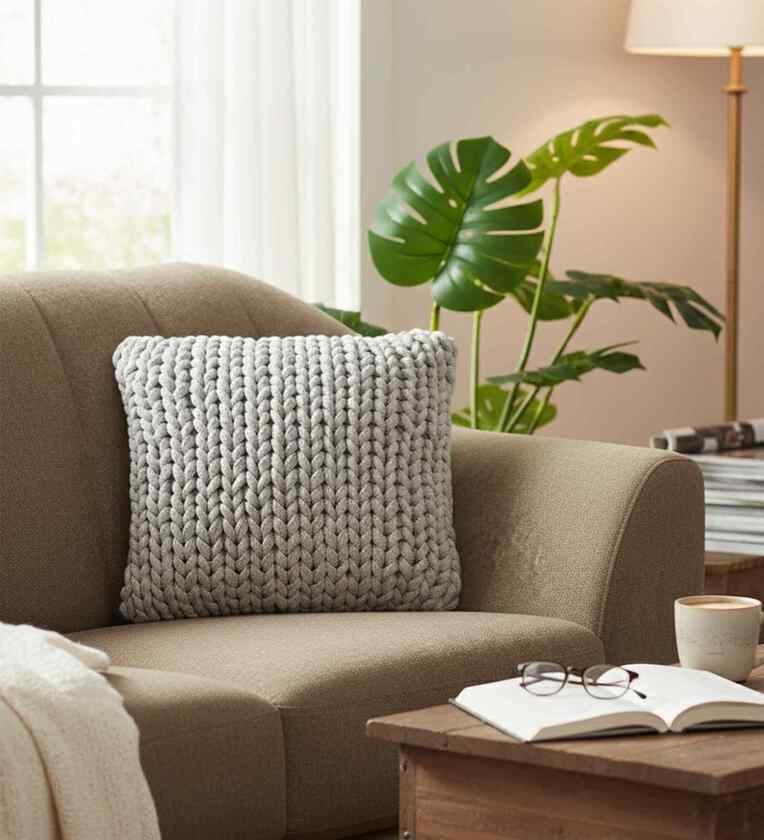 Enhance your decor with Knitted Cushion Cover. This beautifully made Textured cushion cover (No Fill Inside) is expertly knitted in 100% Quality Cotton.