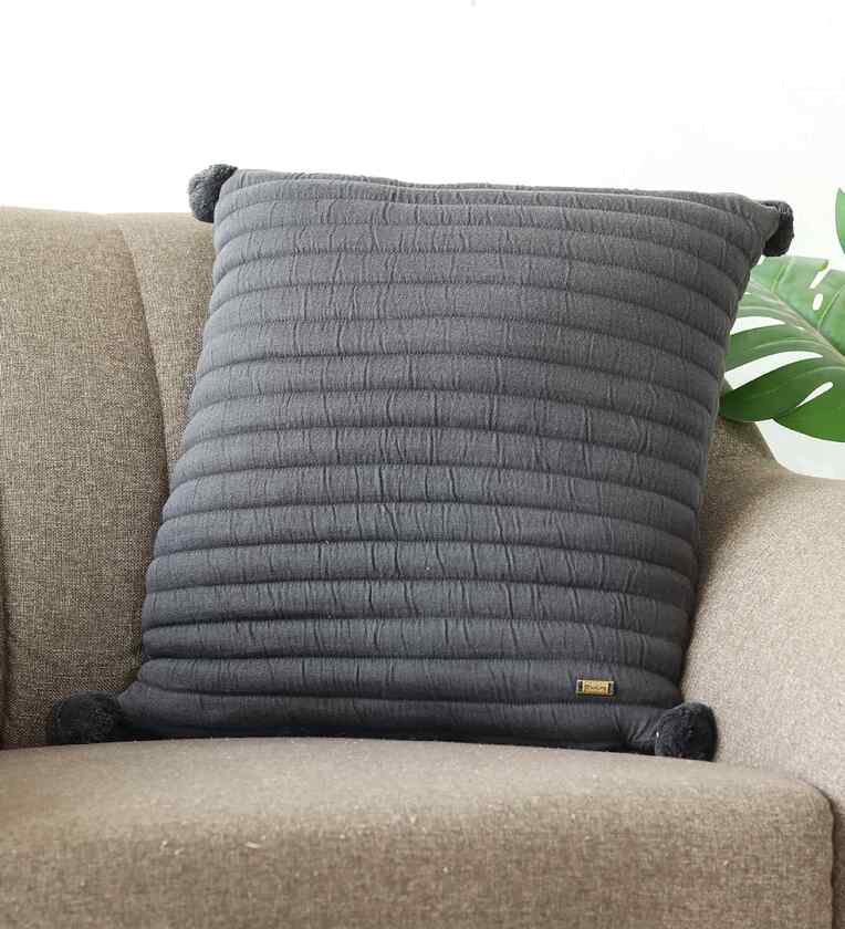 Cool Grey & Dark Grey Melange 100% Cotton Aydin 18X18 Inches Knitted Cushion Cover
