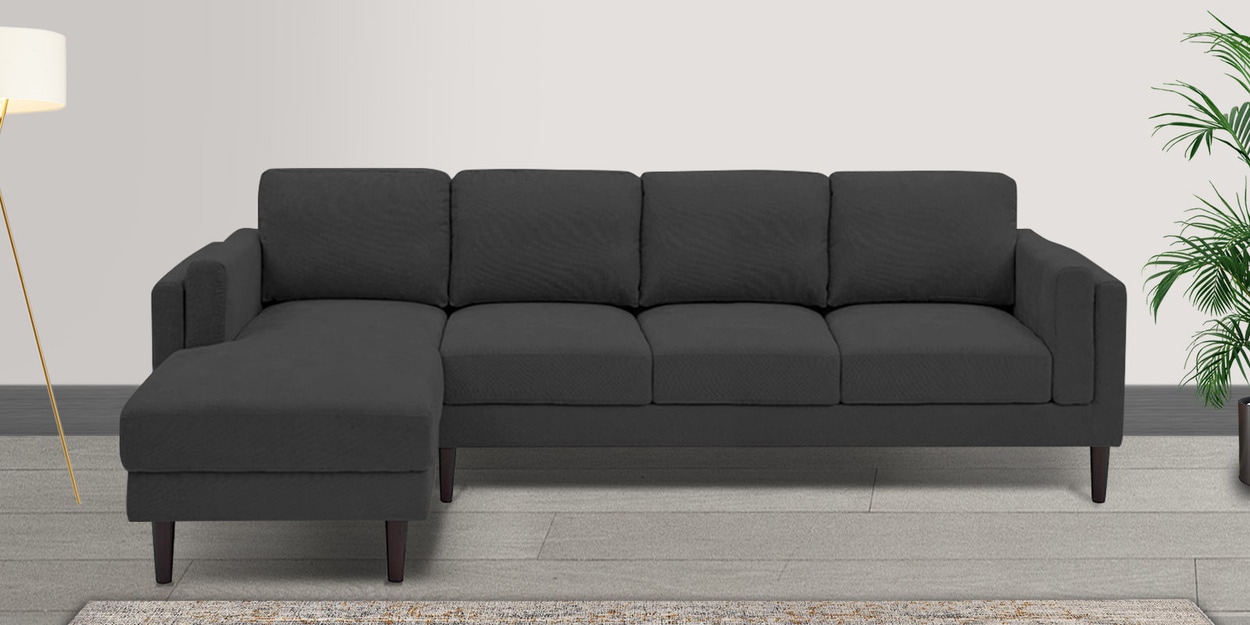 Creata Fabric Rhs Sectional Sofa (3+Lounger) In Charcoal Grey Colour