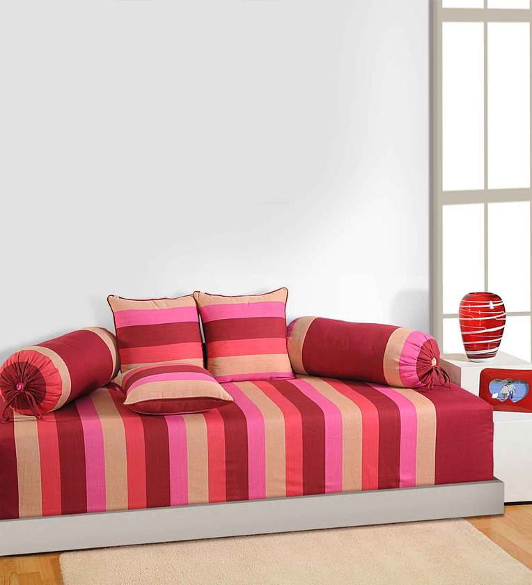 6 Pieces Set ( 1 Diwan Sheet, 2 Bolster Cover, 3 Cushion Covers)