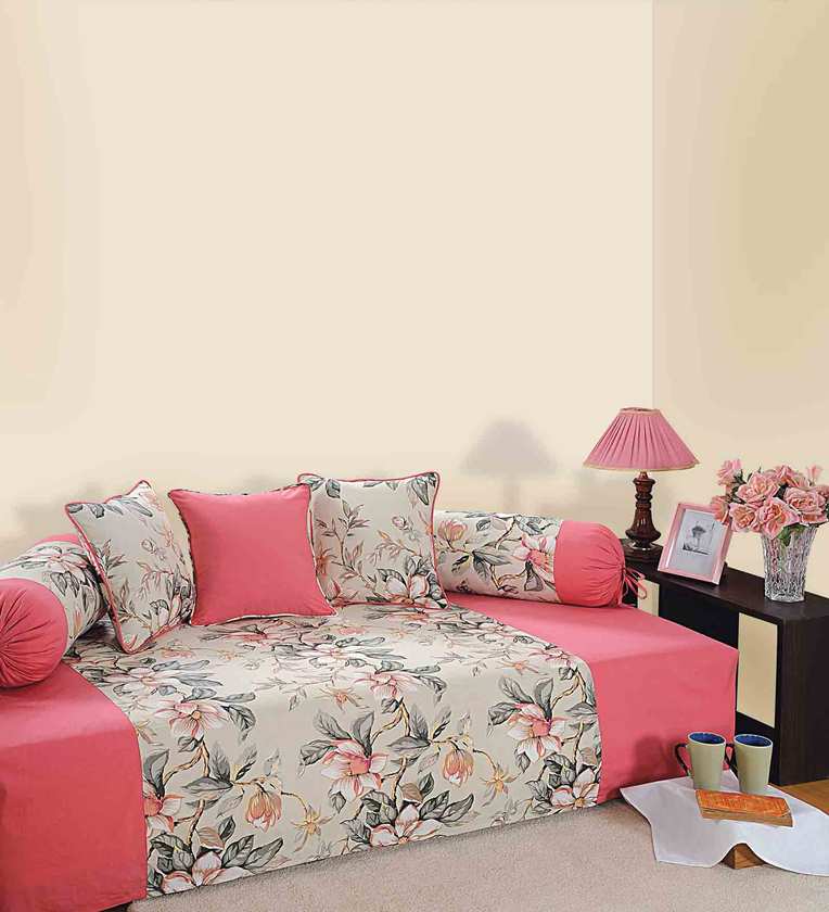6 Pieces Set ( 1 Diwan Sheet, 2 Bolster Cover, 3 Cushion Covers)