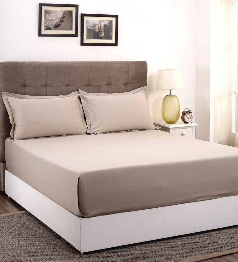 Brown Solid 400 TC Cotton 1 Double King Size Bedsheet with 2 Pillow Covers
