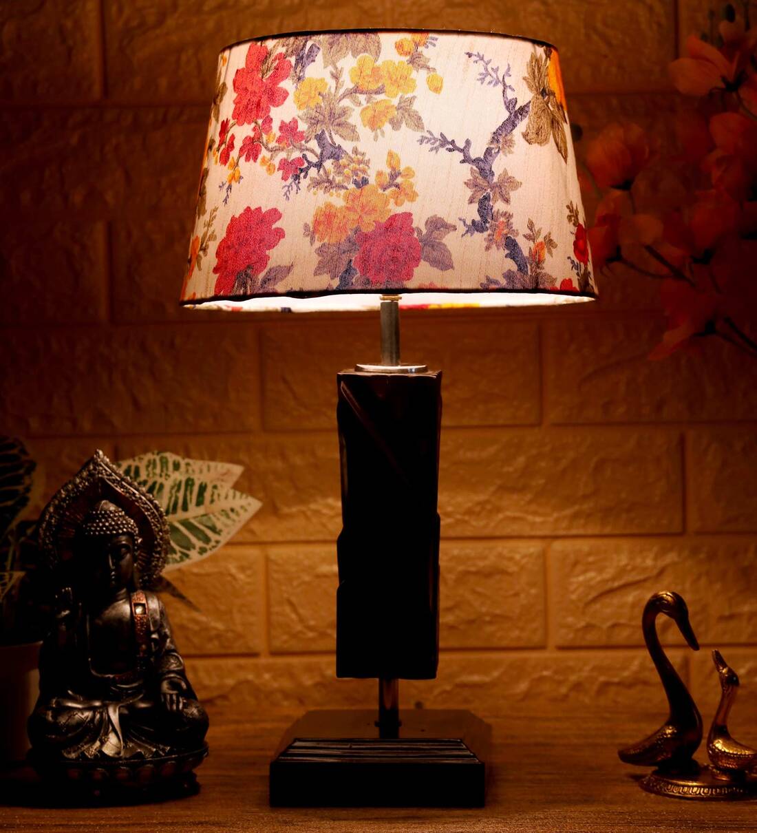 Coventry Multicolour Fabric Shade Night Lamp With Wood Base