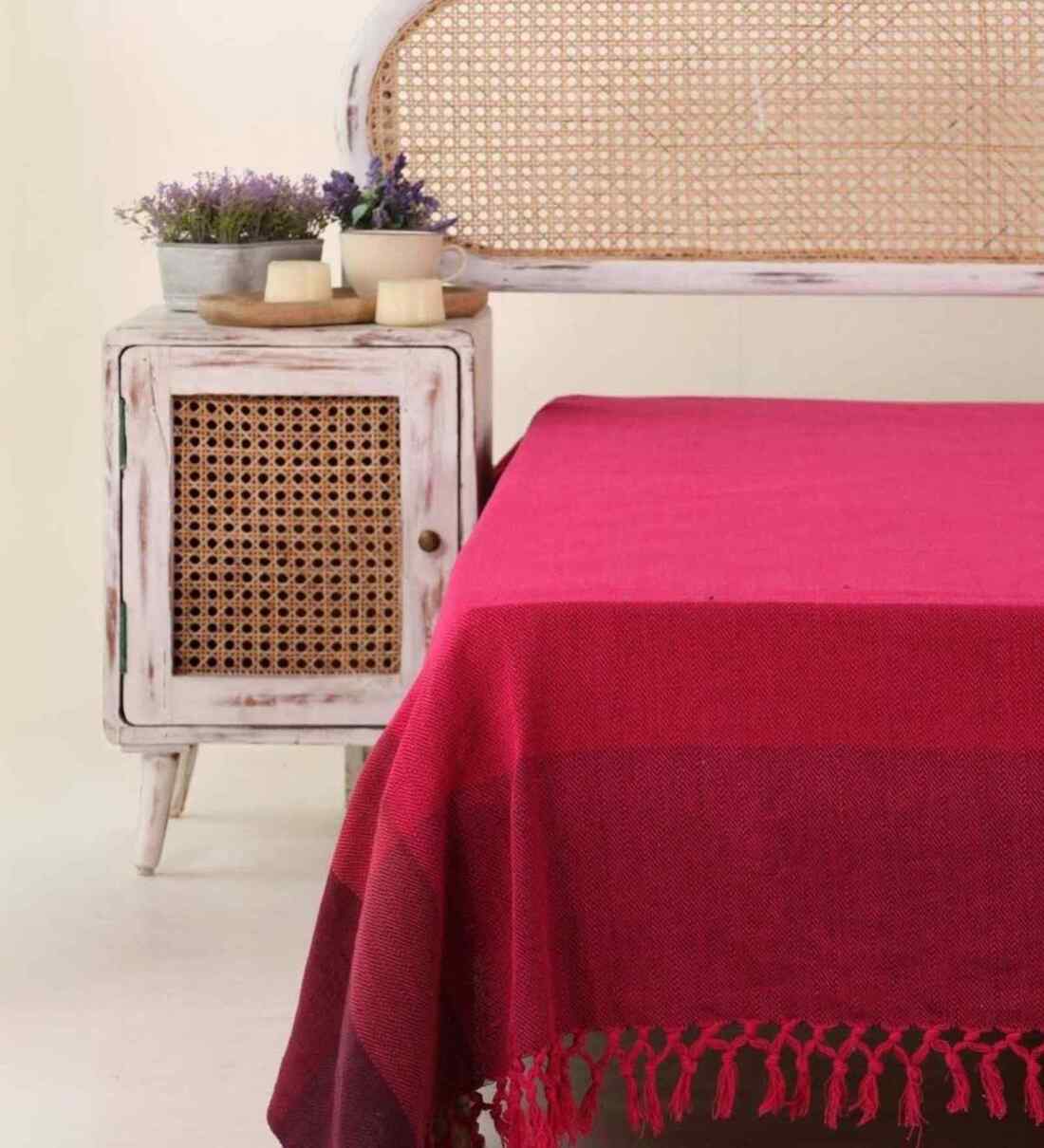 Handwoven Cotton King Size Double Bedcover In Berry Tones