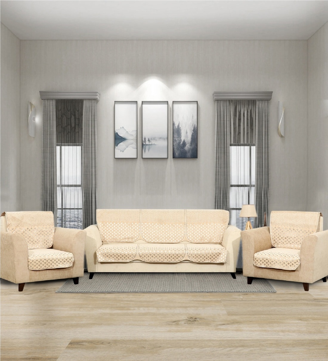 Cream 5 Seater Abstract 10Pcs Sofa Covers