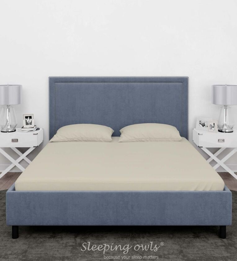Cream Cotton Solid Finest 300TC Plain Super King Bedsheet with 2 Pillow Covers