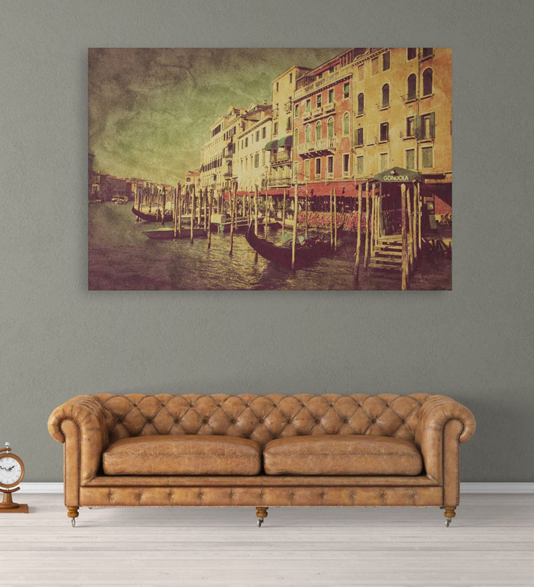 Vintage City In Cream Canvas Framed Art Print (33 x 21 Inches)
