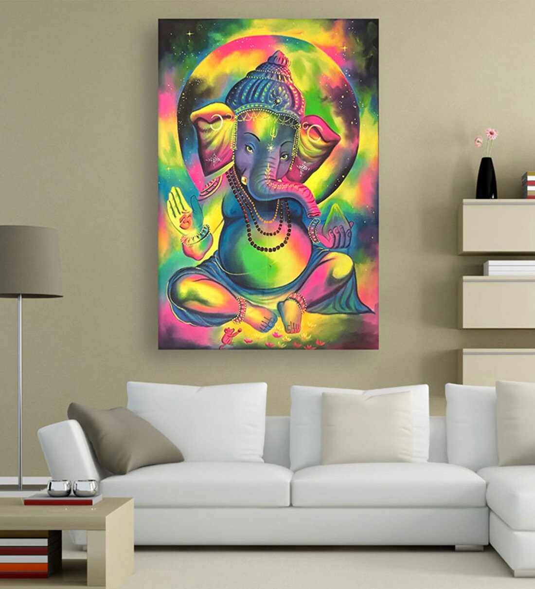 Ganesha In Cream Canvas Framed Art Print (33 x 21 Inches)