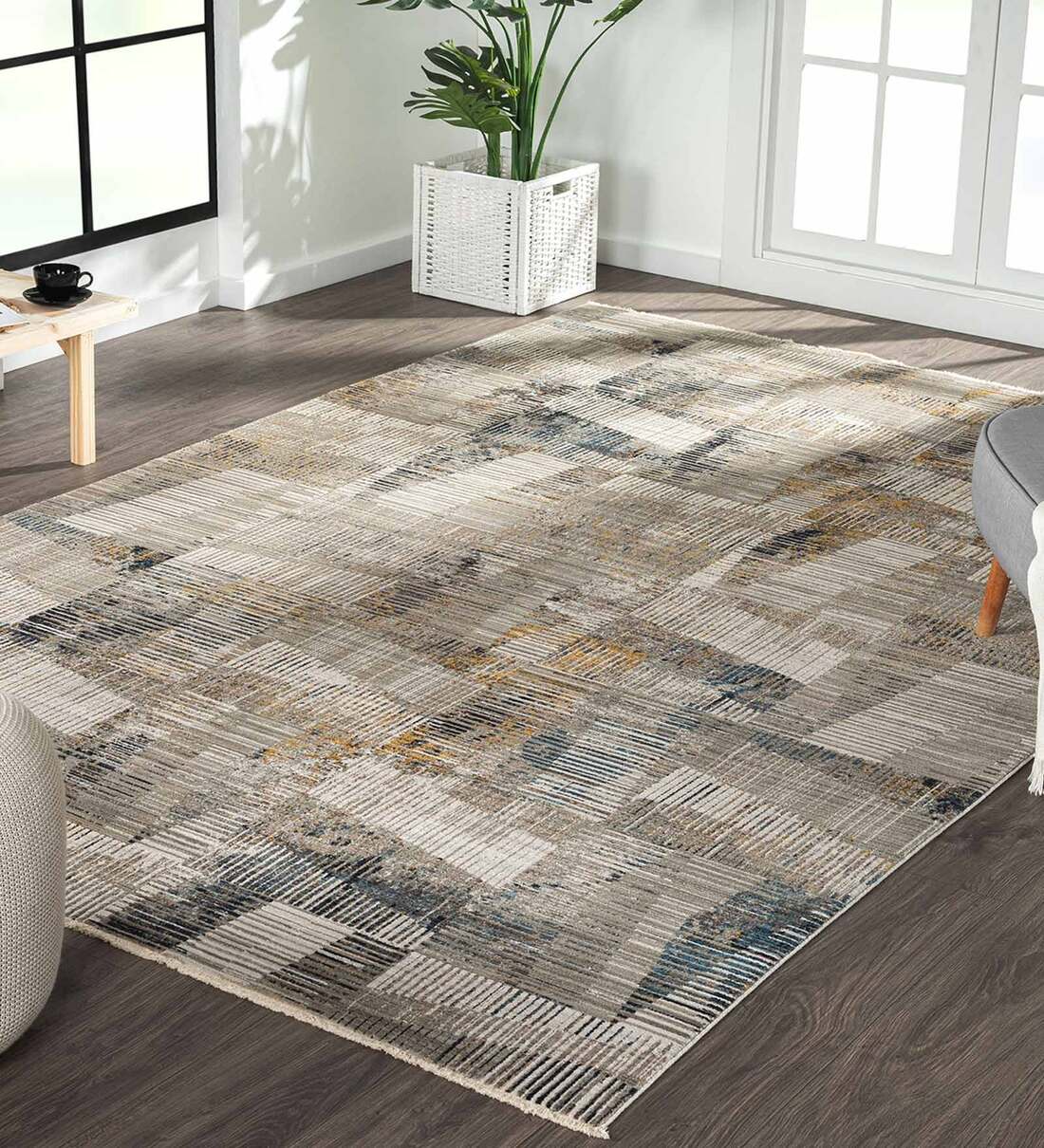 Cream Polyester Abstract 4 x 6 Feet Carpet