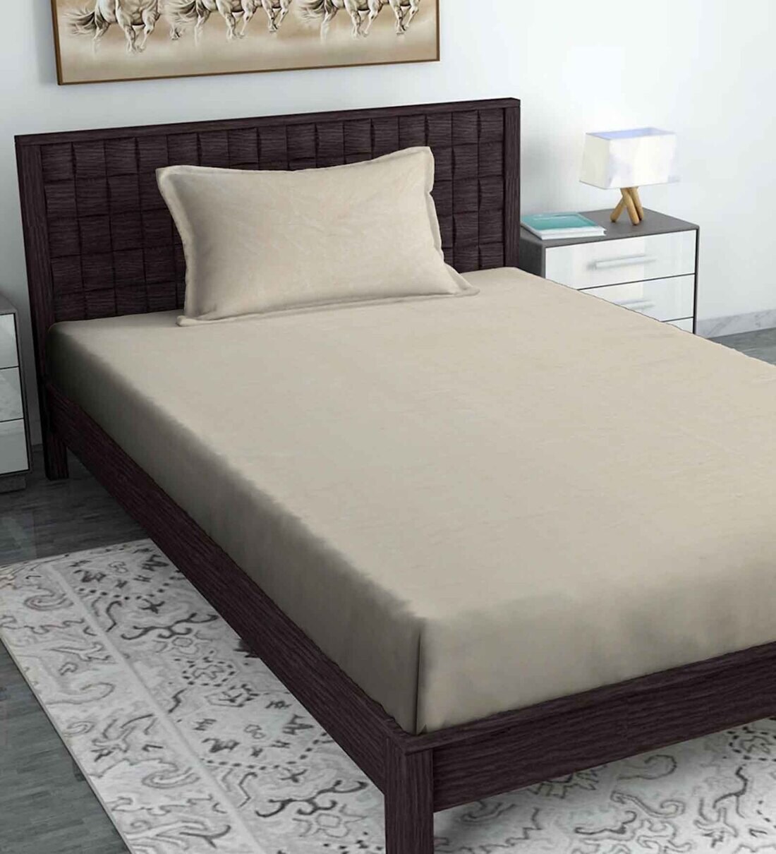 Cream Solid 300 TC Yarn Single Fitted Bedsheet With 1 Pillow Cover