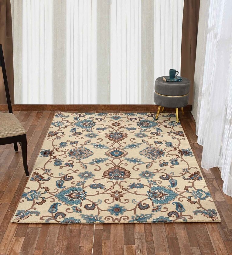 Cream Traditional Wool 5 ft x 7 ft Hand Tufted Carpet
