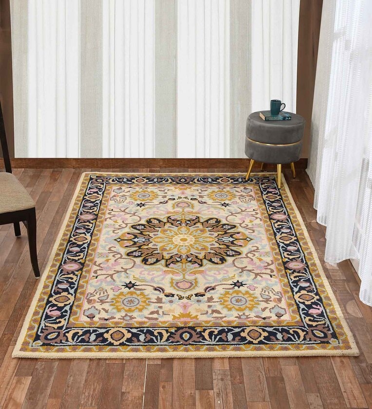 Cream Traditional Wool 6 ft x 9 ft Hand Tufted Carpet