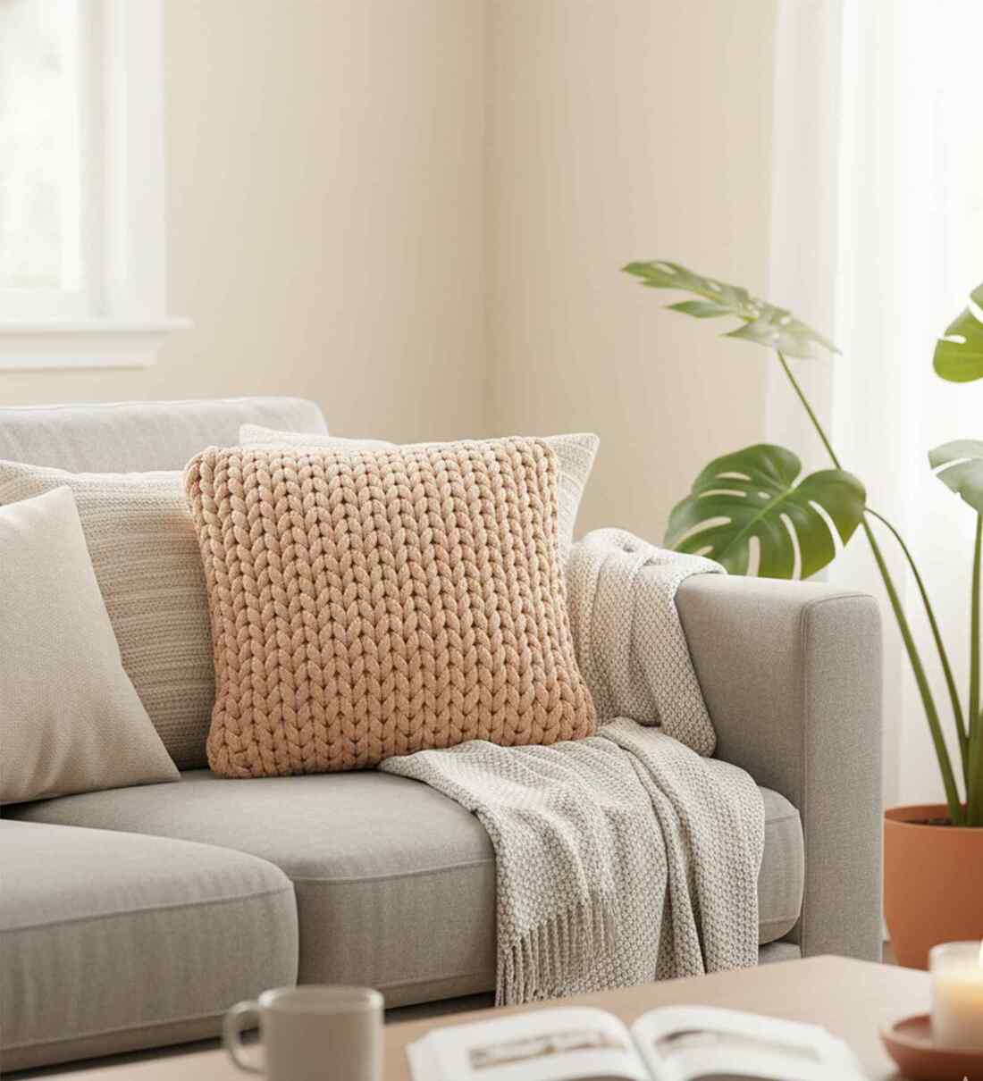 Enhance your decor with Knitted Cushion Cover. This beautifully made Textured cushion cover (No Fill Inside) is expertly knitted in 100% Quality Cotton.