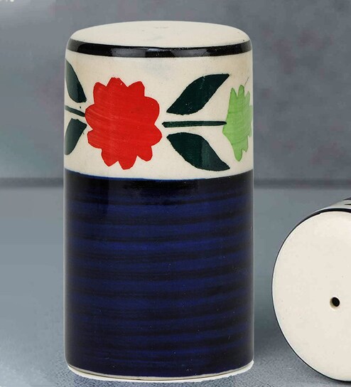 Crok Chok Ceramic Kitchen Drizzlers Spice Set | Salt And Pepper Set For Dining Table (70 Ml, Floral Blue)