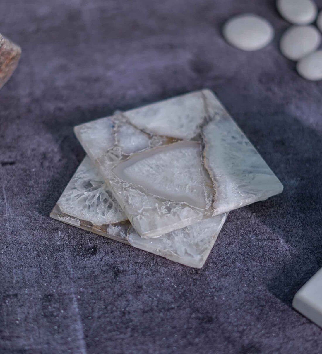 Crystal Agate Stone Coaster Set of 2 Square for Bar, Beer, Coffee, Tea White