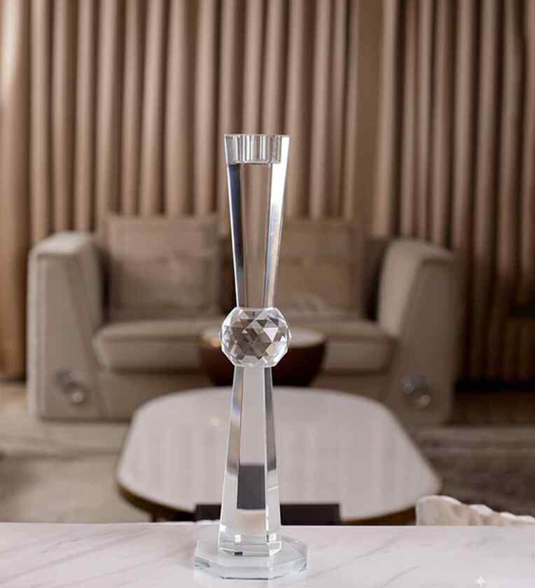 Add timeless sophistication to your d cor with this exquisitely crafted crystal candle stand, designed specifically for taper candles. It bringing a radiant sparkle to any room.