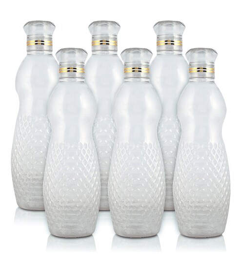 Crystal Design 1 Ltr Plastic (Set Of 6 ) Water Bottle