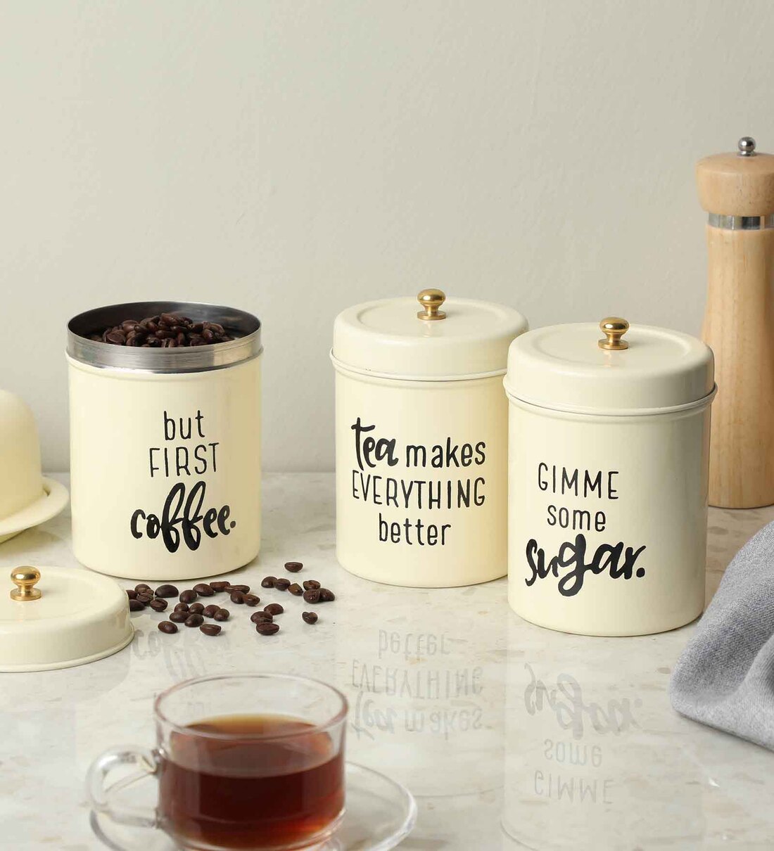 Cuba Ivory Stainless Steel 800Ml (Set of 3) Storage Jar & Containers With Lid