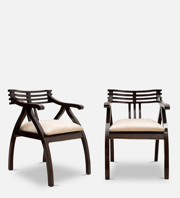 Cubico Arm Chair (Set Of 2) In Beige Colour