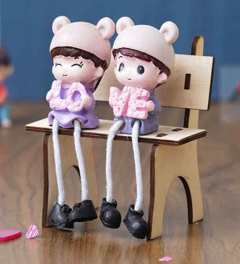 Cute Couple Sitting Beanch Multicolour Polyresin Showpieces