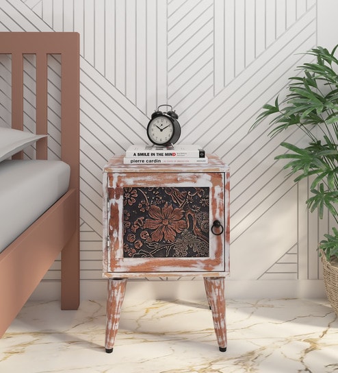 Cyrus Solid Wood Bedside Table In White Distress Finish