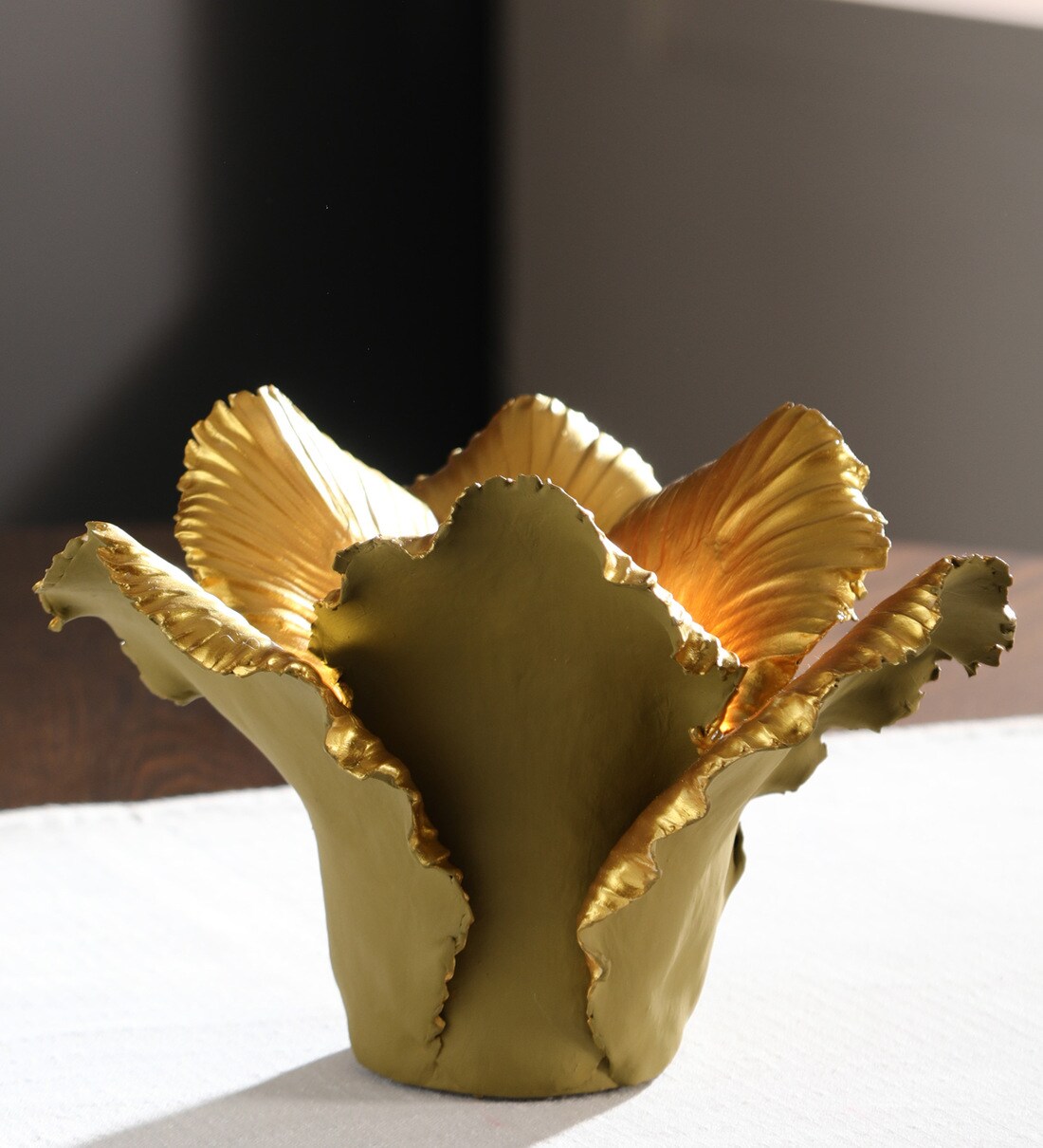 Khakhi and Gold rose Shaped Ceramic Candle Holder
