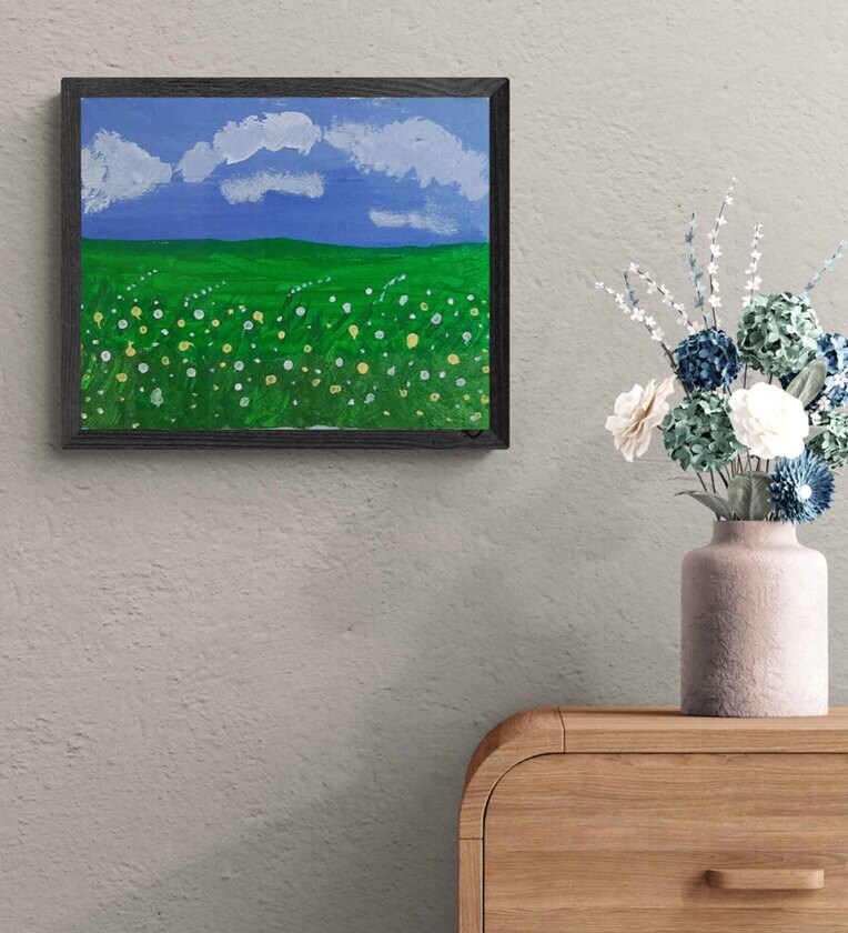 Add meaning to your home & workspace with Atypical Art. "Daffodils Meadow," an acrylic on canvas board, captures the vibrant essence of spring. The artwork features a lush field of golden daffodils swaying under a bright, clear sky. The bold brushstrokes and vivid colors evoke a sense of joy and renewal, inviting viewers into a serene natural landscape.What you will receive: - Original Artwork without frame - Certificate of Appreciation for empowering an Artist with Disability (shared over email) Expected delivery time: 7-10 business days