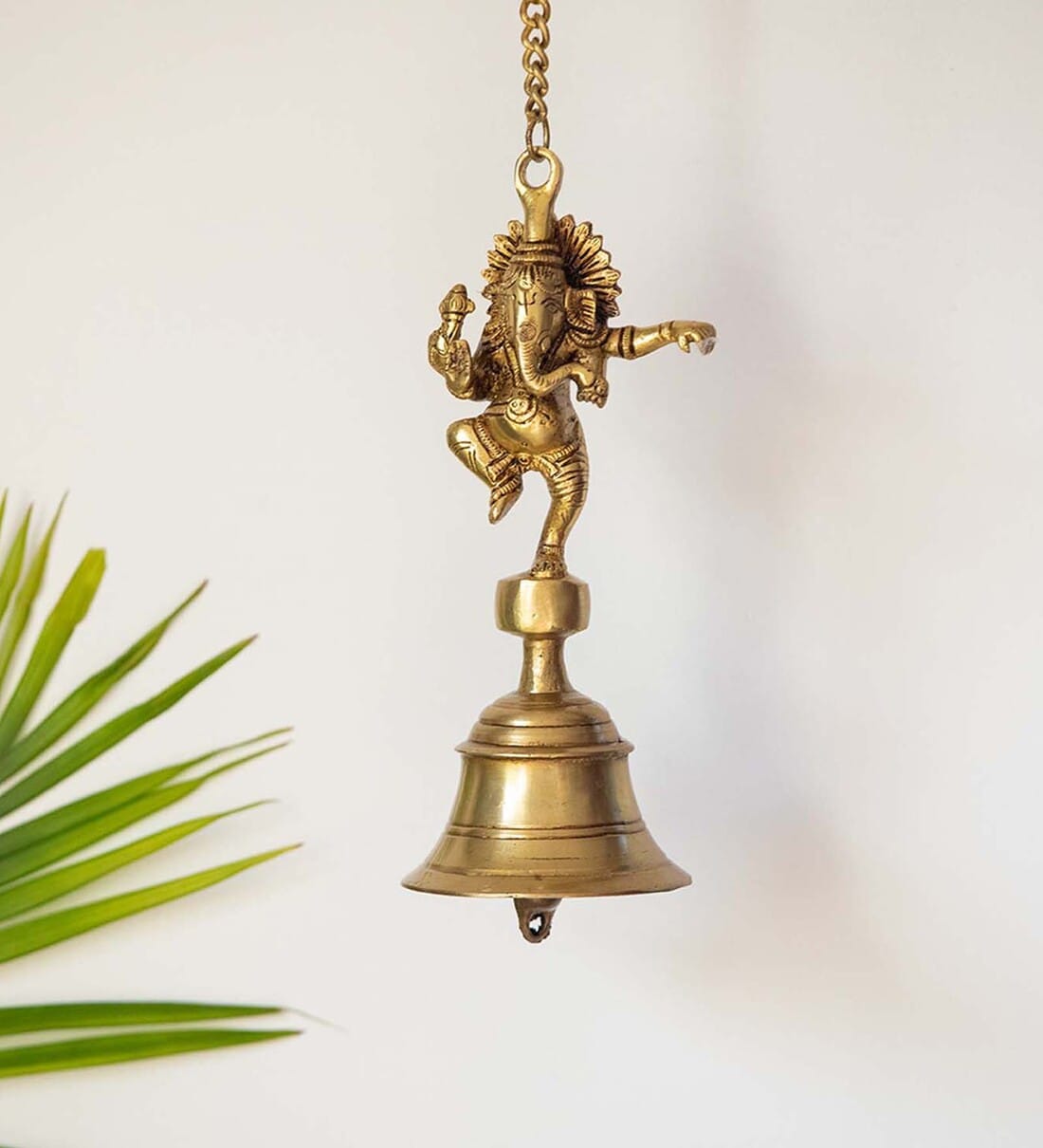 Dancing Ganpati Hand-Etched Gold Brass Decorative Hanging Bell