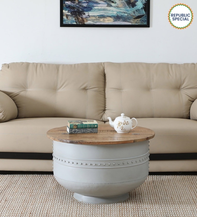 Danzi Metallic Coffee Table In White And Natural Finish With Storage