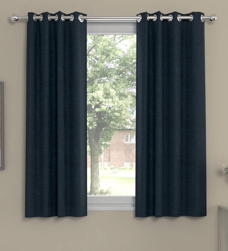 Dark Blue Polyester Solid 5 Ft Semisheer Eyelet 2 Window Curtains