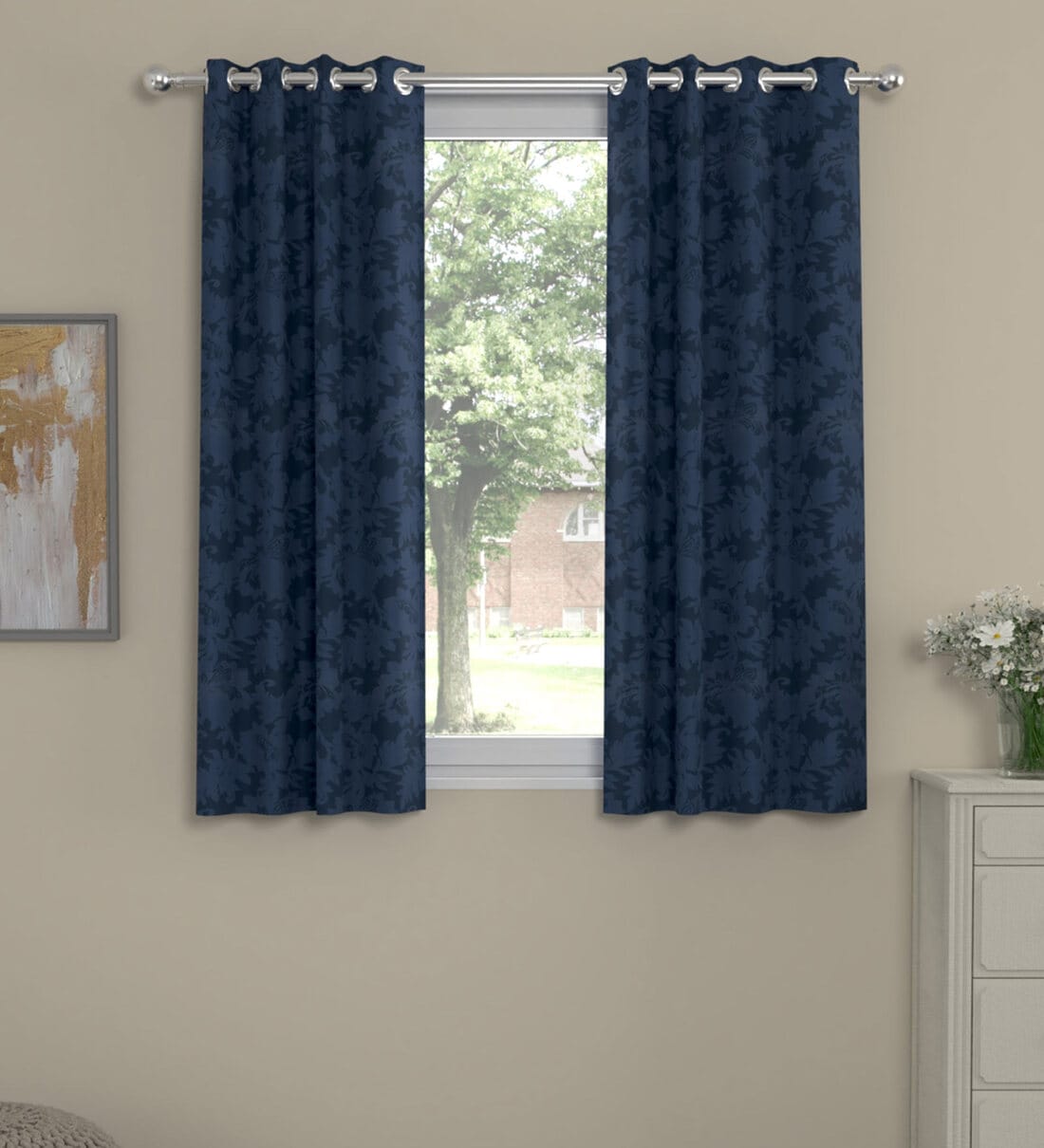 Dark Blue Polyester Floral 5 Ft Semisheer Eyelet 2 Window Curtains