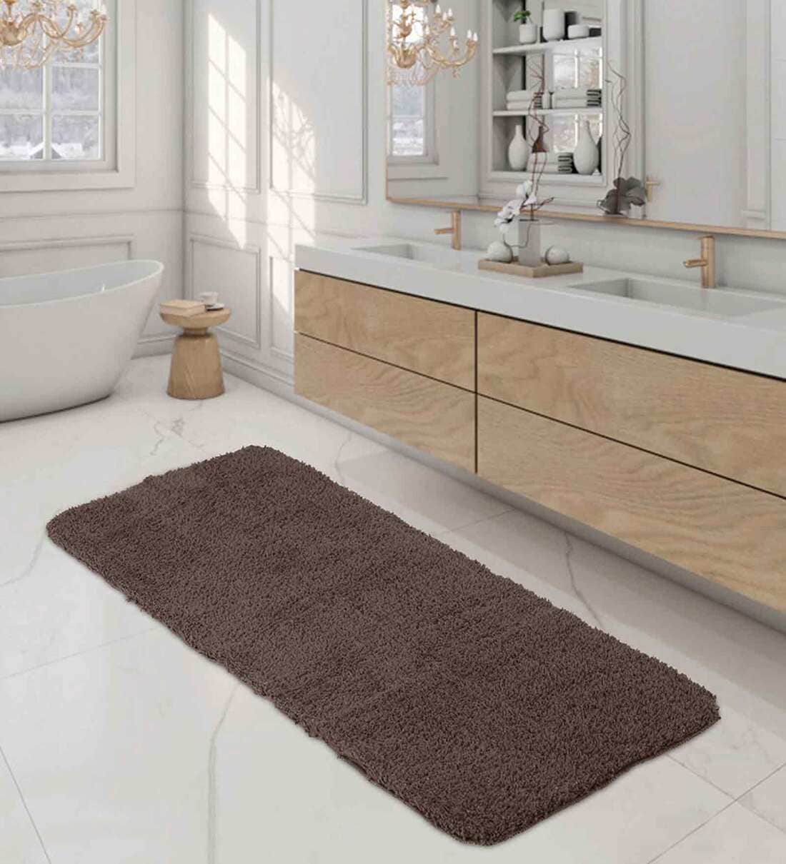 Dark Brown Solid 100% Polyester 59x23.6 Inches AntiSkid Bath Mat