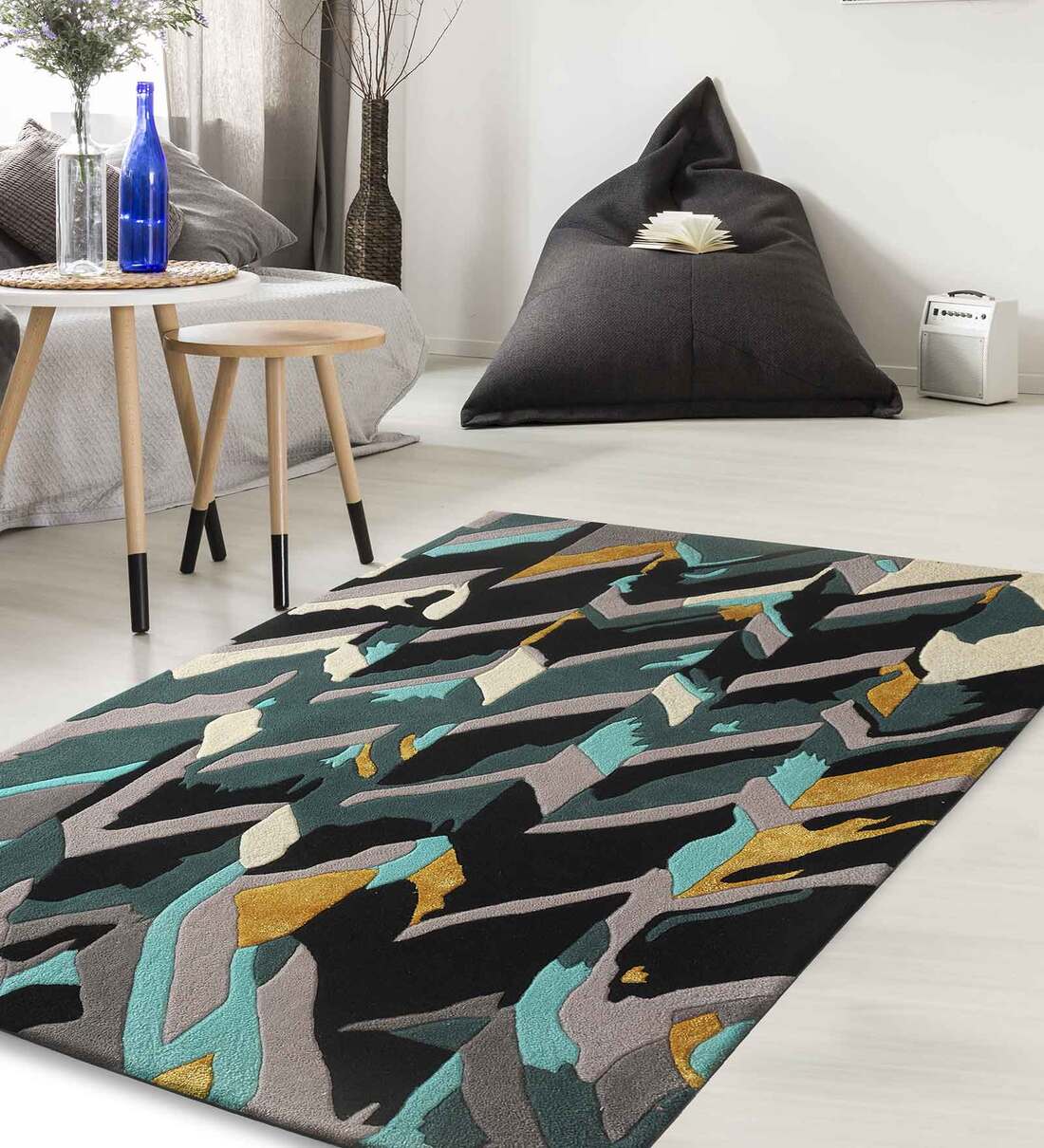 Buy Dark Green Wool And Art Silk Abstract 5 x 7 Feet Hand Tufted Carpet