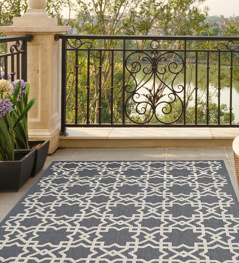 FLORIDA Outdoor Indoor area rug CHARCOAL - 810 X 67. Beautifully crafted rug for your living room, patio , balconies , veranda and outdoor space. Versatile flat woven construction using premium polypropylene yarns. Manufactured using Belgian technology on Wilton looms. Easy care. Water resistant, does not smell due to absorption of water during rainy seasons. Quick Dry.