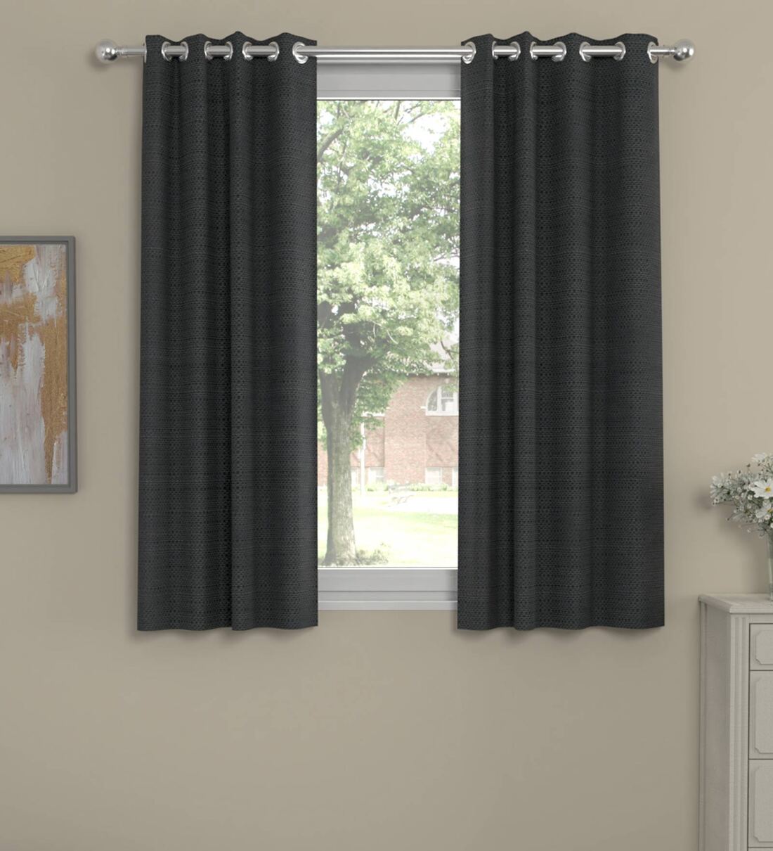 Dark Grey Polyester Solid 5 Ft Semisheer Eyelet 2 Window Curtains