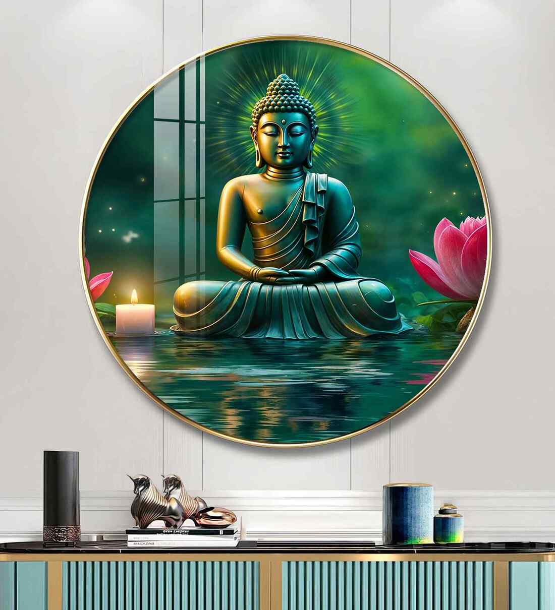 Bring home the timeless elegance of nature with our Deep Meditating Buddha Wood Glass Finish Round Wall Art. The vibrant hues and intricate detailing of the design, a perfect balance of grace and grandeur, making it a captivating centerpiece for your living room, hallway or bedroom. Designed to symbolize prosperity, beauty, and positivity. High-definition print, Durable long-lasting quality material wall art perfect for modern and traditional interiors