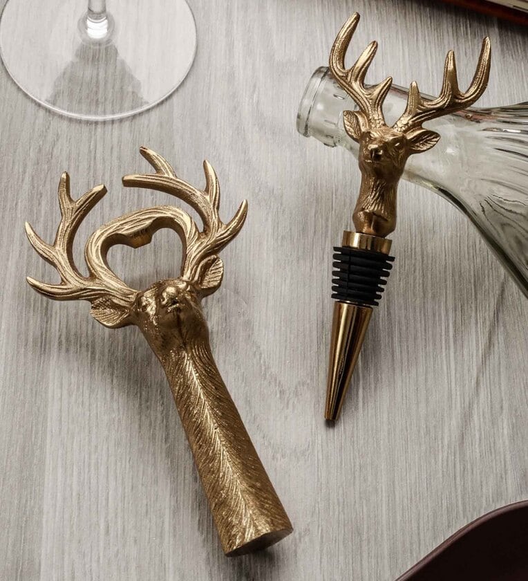 Aluminium Deer Bottle Stopper And Bottle Opener Combo Set (Pack Of 2)