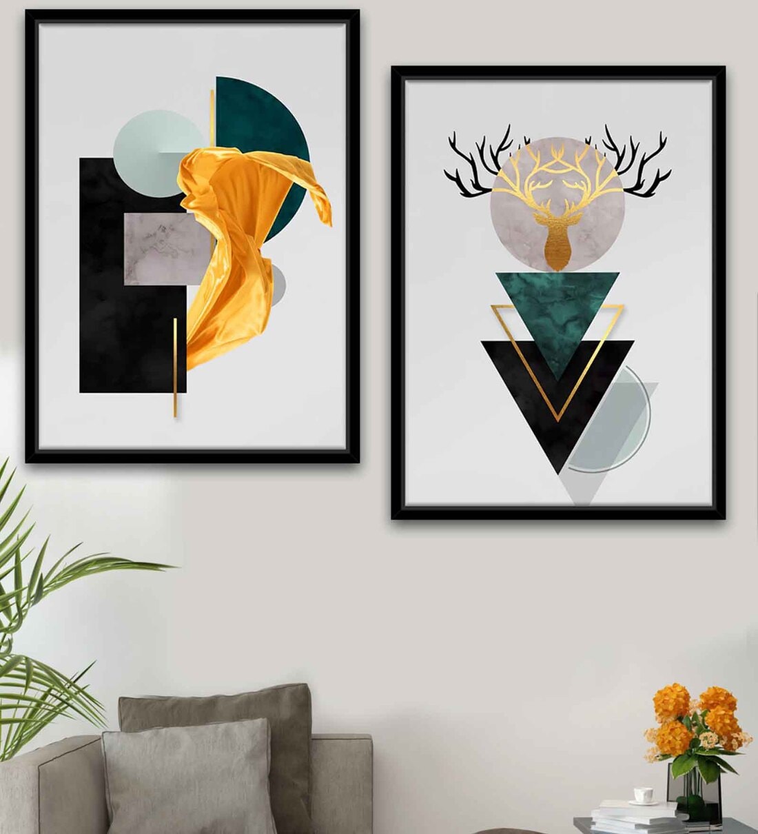 Deer Gold Canvas Framed Wildlife Art Print Set of 2