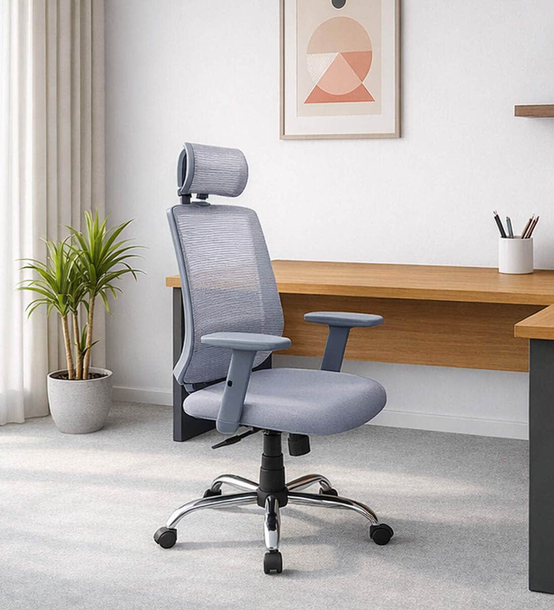 Nagisa Ergonomic Chair With Adjustable Handle, Lumbar Support and Neck Rest In Grey Colour